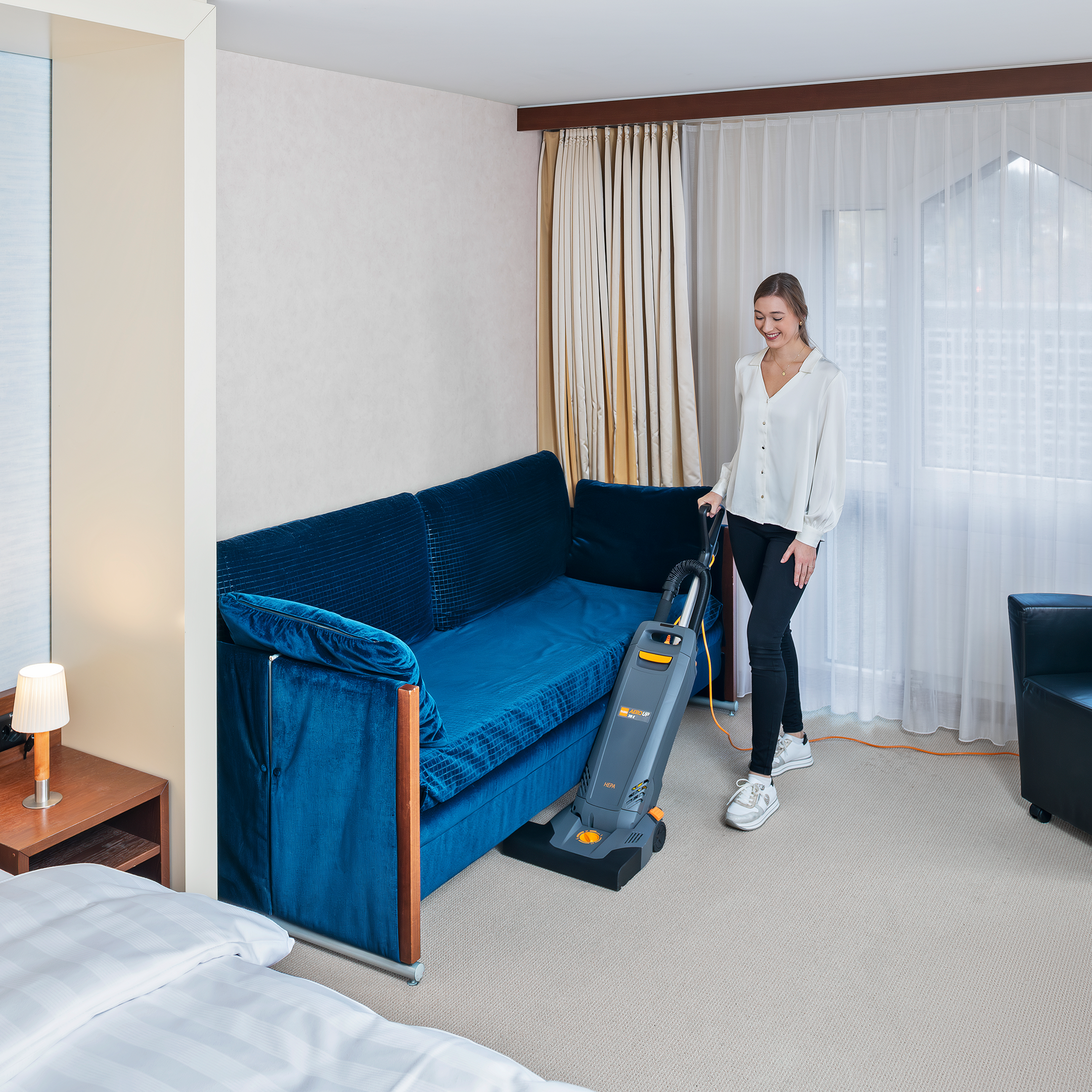 The battery powered models allow super flexible cleaning operation, without disturbing your customers and guests and, most importantly, without any cable hazards.